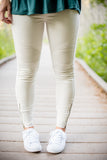 Ahh the Moto Jegging. Looks like you're wearing jeans but the comfort of a jegging. Elastic waistband, zippered pant leg, moto style. These are killer popular and for good reason!