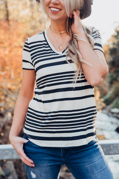 B+W Stiped V-Neck