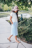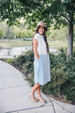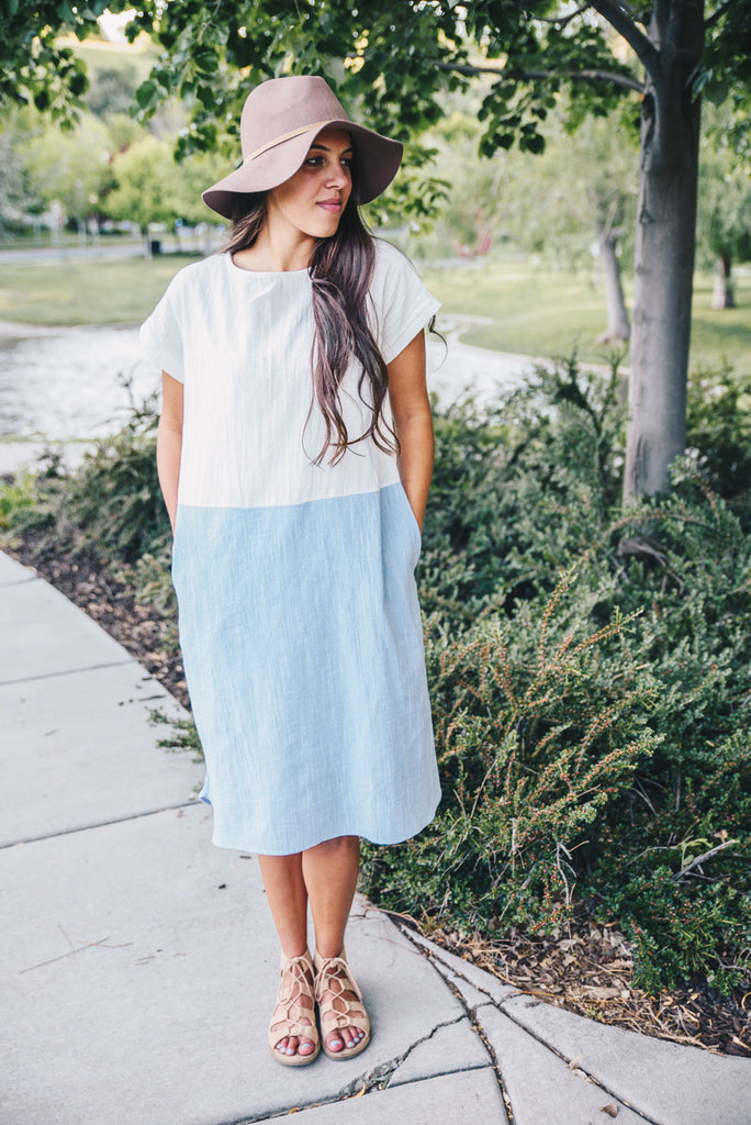 Looks like linen, but doesn't wrinkle like linen. ;) Our Coastal Linen Dress has a loose, boxy feel which means it is extremely comfortable. Bonus: it also has pockets. You're probably going to need this one.