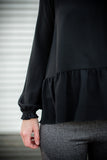 The best top of the season. The high ruffle neck + keyhole closure in back + ruffled sleeve cuff + the PERFECT peplum length all combine together to make the most flattering blouse. Looks great with jeans, leggings or even a pencil skirt for something fancy.
